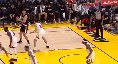 比卢普斯发现队员基本都是三分出手外加突破强打,索性大手一挥换上杜普·里斯、阿夫迪亚这些身高不行,但动态天赋更强的锋线,改打死亡五小。凭借着半场28中12的三分,开拓者73-57领先勇士。