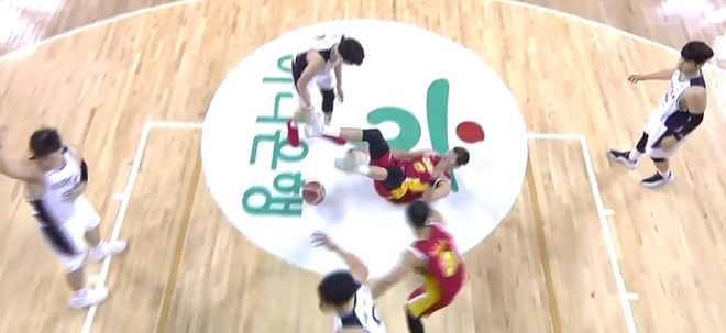 第四节的比赛,早早的进入到了垃圾时间,人家韩国队打得如鱼得水。第四节比赛刚刚开始不到一分钟,主力球员程帅澎不小心崴到脚,从慢镜头来看,这是一个接近90度的一个崴脚,随着程帅澎的受伤下场,中国队将彻底失去一切希望。